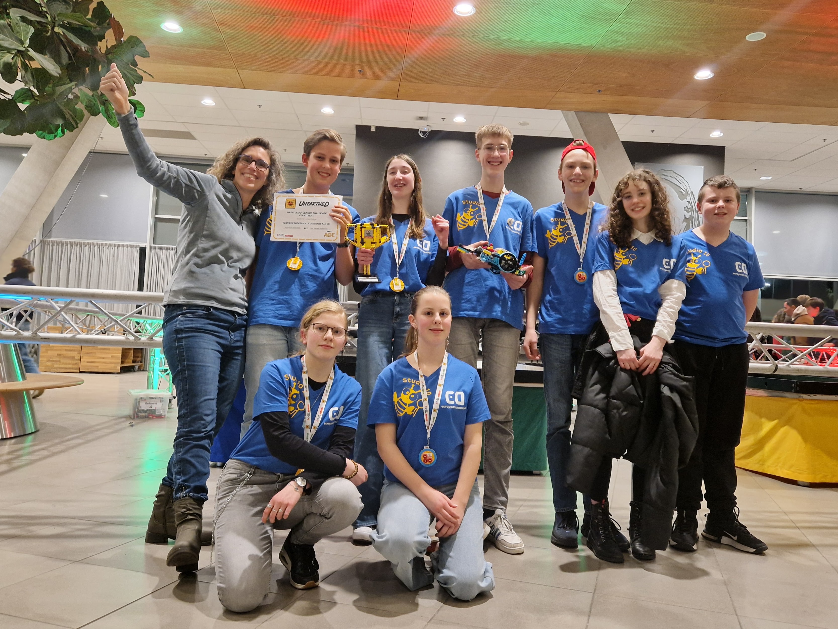 Zaterdag 24 januari was de regiofinale van de First Lego League op NHL Stenden in Leeuwarden. Drie teams leerlingen van het Technasium van het Linde College deden mee. Met hun eigen idee en ontworpen robot streden ze voor verschillende prijzen. En met succes.
